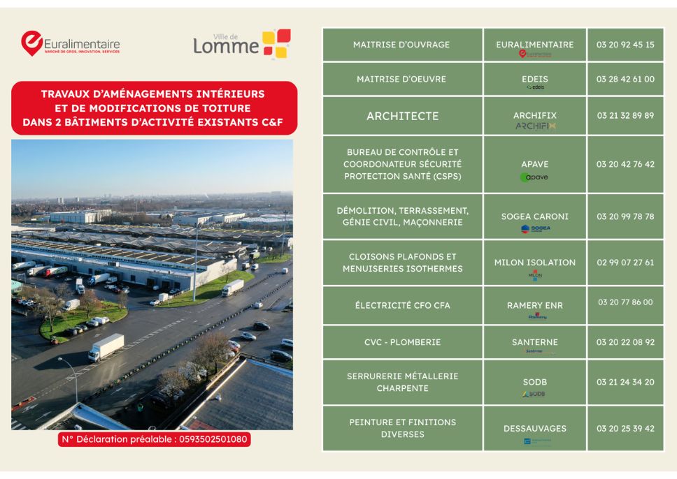 Plusieurs entreprises spécialisées participent à cette opération. Chacune agit dans son domaine d’expertise. SOGEA CARONI a la charge du gros œuvre et des opérations de déconstruction. MILON s’occupe de l’installation des panneaux sandwiches. RAMERY gère les travaux électriques. Les travaux de métallerie et de serrurerie sont confiés à SODB, et les finitions à l’entreprise DESSAUVAGES.